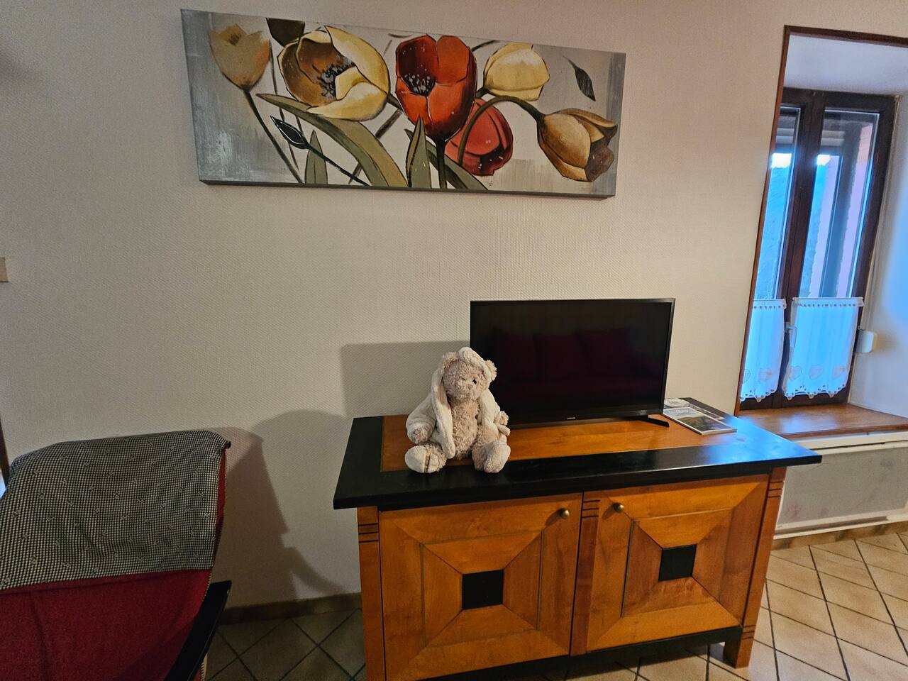 - Chambre 2 : 2 lits simples + 1 lit double
